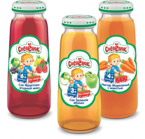 В ассортиментной линейке детских соков «Спелёнок», выпускаемых традиционно в упаковке Tetra Pak, «стеклянное» пополнение. С августа 2013 года соки «Спелёнок» выпускаются в новом формате упаковки - в стеклянных бутылочках емкостью 200 мл, дизайном которых занималось агентство DDVB.