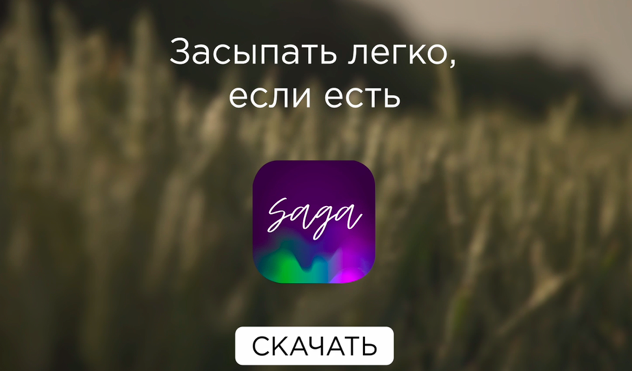 По результатам последнего опроса ВЦИОМ, за семь лет в России выросло число людей, которые долго не могут заснуть — с 34% до 42%. Шведская компания Saga sleeping technologies проконсультировалась с экспертами Института исследования стресса, создала по их рекомендациям специальный контент для легкого засыпания и упаковала его в удобное приложение. Дизайном, разработкой и продвижением занималось агентство