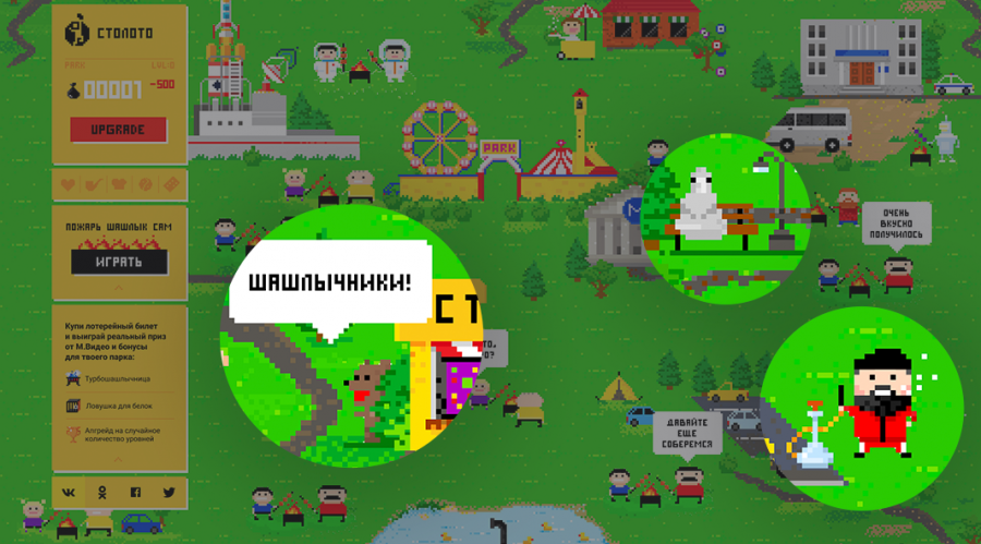 Под каждую стадию релевантен свой контент. Например, во время первой волны пандемии настал момент, когда люди захотели отвлечься от грустной повестки и получить порцию позитивных эмоций. Все надеялись выйти на майские шашлыки, но жёсткие ограничения ещё не сняли. Так у нас родилась идея создать онлайн-парк с шашлыками для «Столото». Получилась игра с пасхалками и шутками. За время проекта в неё сыграли 72,3 тыс. пользователей, а к концу года кейс собрал два золота, серебро и бронзу в номинациях Tagline и вошёл в шорт-лист «Серебряного Меркурия».