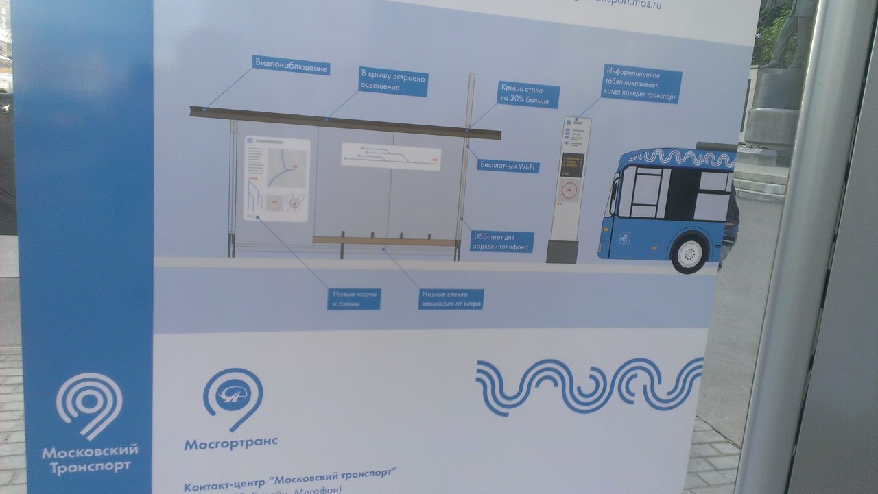 По словам представителей ведомства, дизайн новых остановок был разработан с учетом особенностей Москвы. В крышу встроены специальные световые элементы, остановка освещается в темное время суток. На остановке предусмотрены несколько USB-портов для зарядки мобильных устройств. Остановка оснащена камерой видеонаблюдения и wi-fi роутером, с помощью которого доступ в интернет предоставляется пассажирам бесплатно.