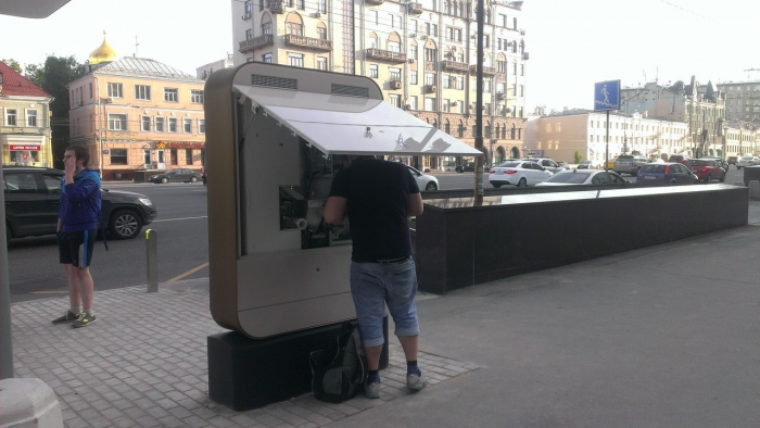 Также павильон оборудован аппаратами по продаже билетов, табло прибытия транспорта, новой системой навигации, включающей несколько карт и схем для планирования маршрутов. К сожалению, работу терминала для покупки проездных корреспонденту Sostav.ru оценить не удалось из-за технических проблем - аппарат ремонтировал мастер.
