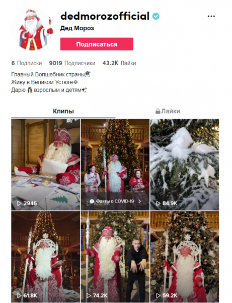 Дед Мороз из Великого Устюга завел страницу в TikTok. Зарегистрироваться в популярной соцсети главному зимнему волшебнику предложил школьник из Калининграда. Аккаунт уже получил галочку о верификации.