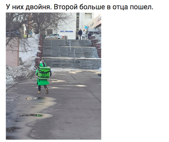 А другие пользователи просто придумывали подписи к фотографии, среди которых, например, «Деливерио и Яндексетта», «Боюсь только, в этой истории траванутся не они», make love, not dostavka.
