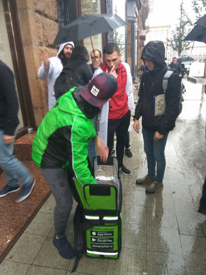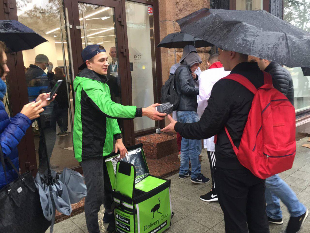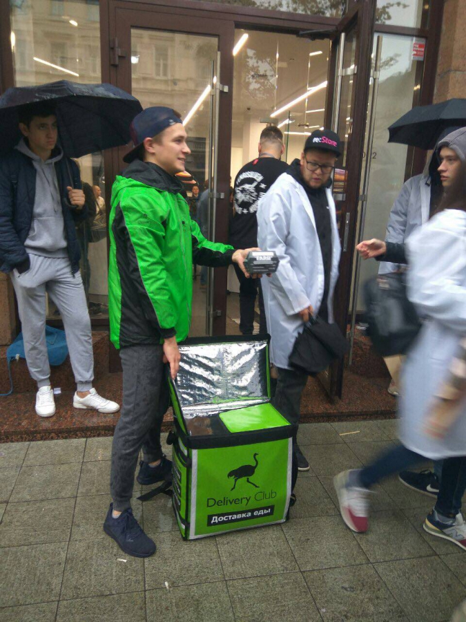 Delivery Club решил бесплатно накормить всех людей, стоящих в очереди за новыми iPhone. Сообщается, что еду привезли прямо к открытию магазина, раздали всё и очень быстро.