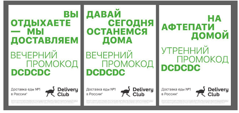 Проект разработан и реализован совместно с компанией Redefine. Рекламная кампания призвана расширить представление жителей города о возможностях доставки, а также развлечь клиентов. На постерах написаны забавные фразы, например, «На афтепати домой» или «Давай сегодня останемся дома».