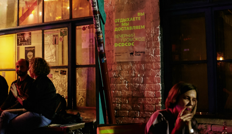 Delivery Club разместил на улицах Москвы рекламные постеры, которые видно только в темноте. На каждом из них — текстовое сообщение и промокод для заказа ужинов и завтраков со скидкой.