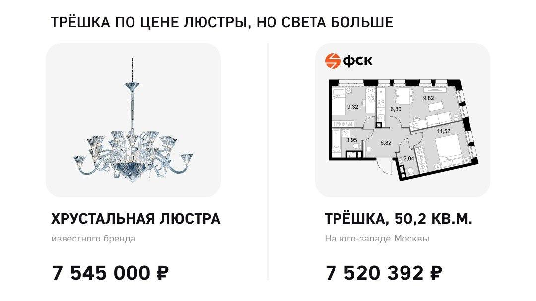 Люстра за 7,5 млн руб. или трехкомнатные апартаменты для семьи за ту же цену?