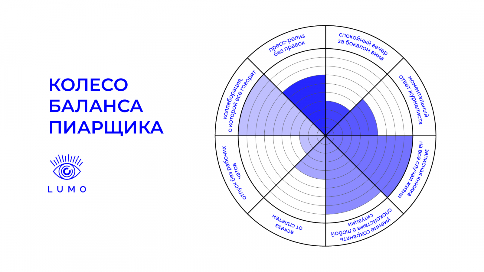 Коллеги, мы, как опытные жонглеры, ловко балансируем между горящими дедлайнами, правками, рабочими чатами, пресс-релизами. Собрали для вас жизненные и неотъемлемые сферы нашей деятельности в колесо баланса PR-специалиста, чтобы вы сами могли выбрать, чего в вашей жизни будет чуточку больше. Ниже вы можете найти нашу версию.