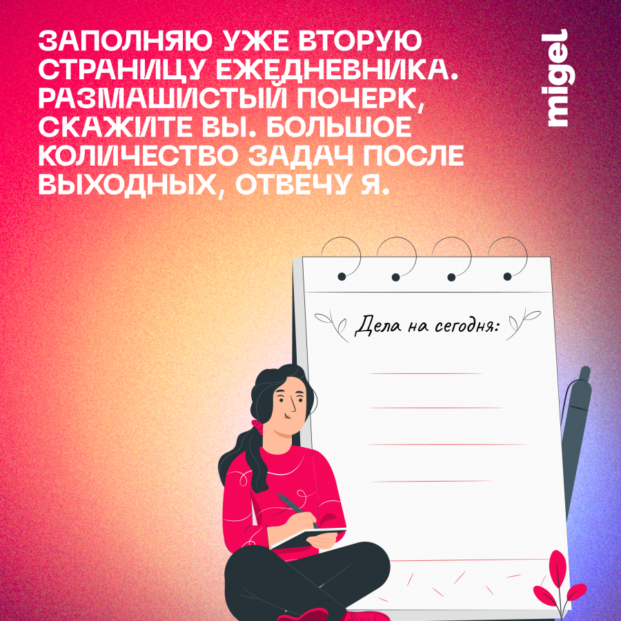 Все просто. В череде 100500 горящих дедлайнов, 243 сообщений в секунду, постоянных согласований, общения с коллегами и партнерами, мониторинга медиа и возможностей, желаем вам качественного времени с заботой и любовью К СЕБЕ.