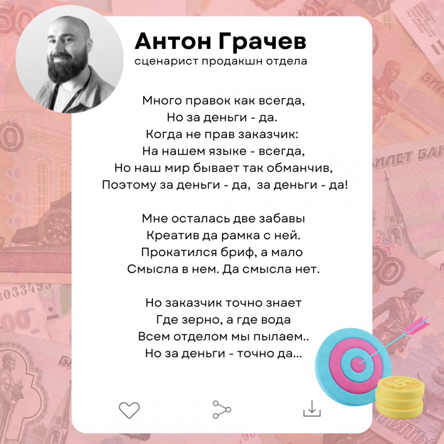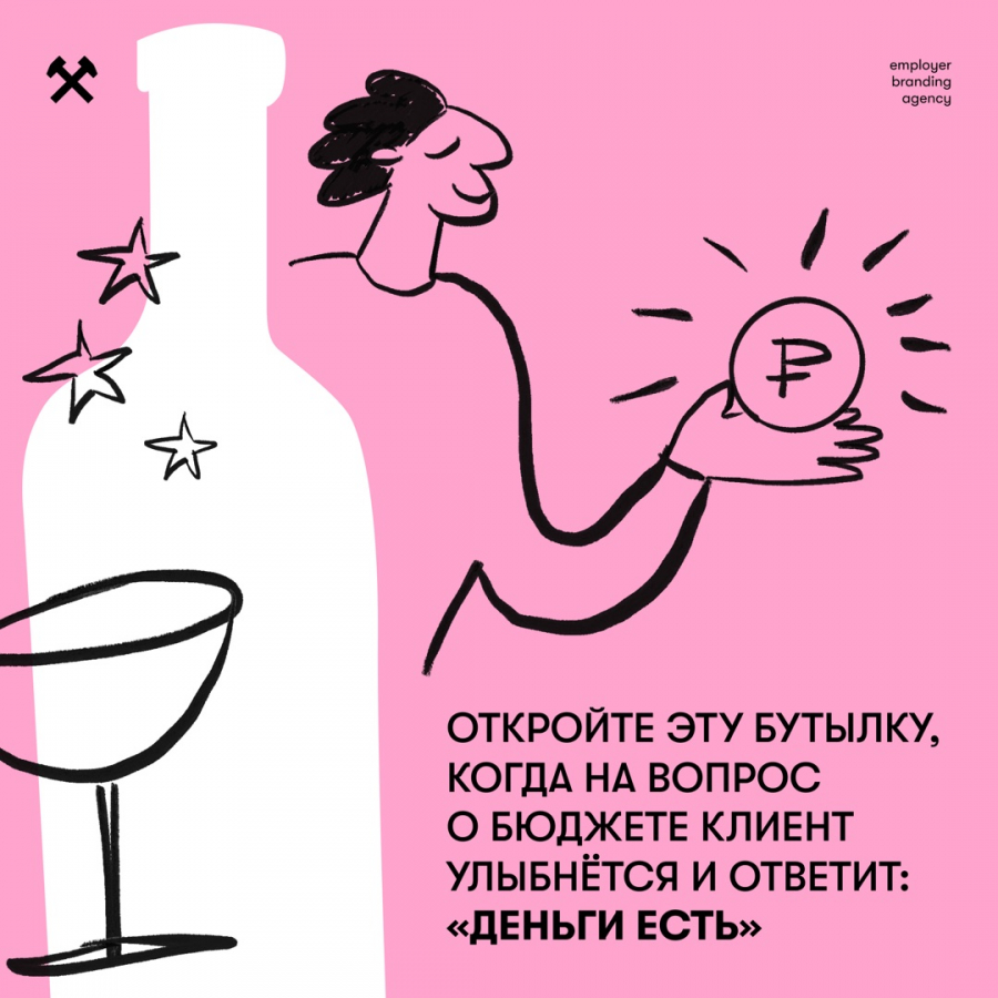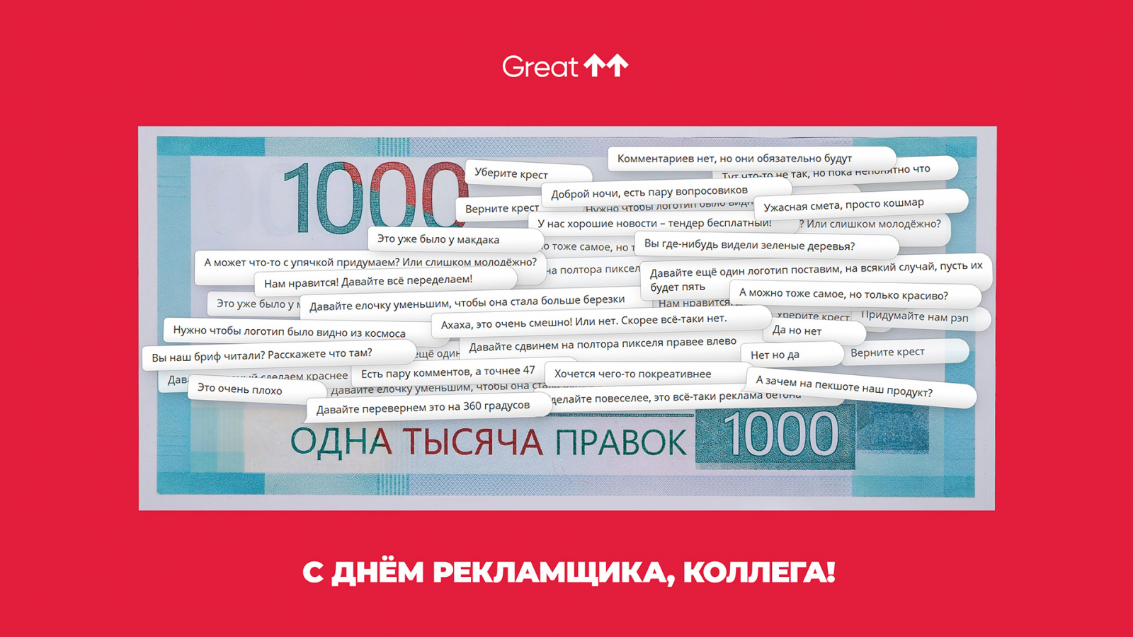 Создание рекламы, это почти всегда командная работа, поэтому хотим тебе пожелать побольше взаимопонимания: с клиентами, подрядчиками и коллегами по проектам.