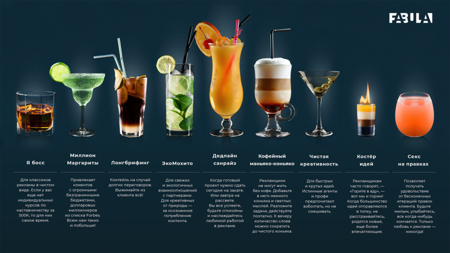 Реклама — это искусство, которое сопровождает нас в любое время и в любой ситуации. Мы создаём миры из слов и изображений, вдохновляем и влияем на восприятие. Нашей главной задачей является вдохновение самих себя, чтобы вдохновлять других.