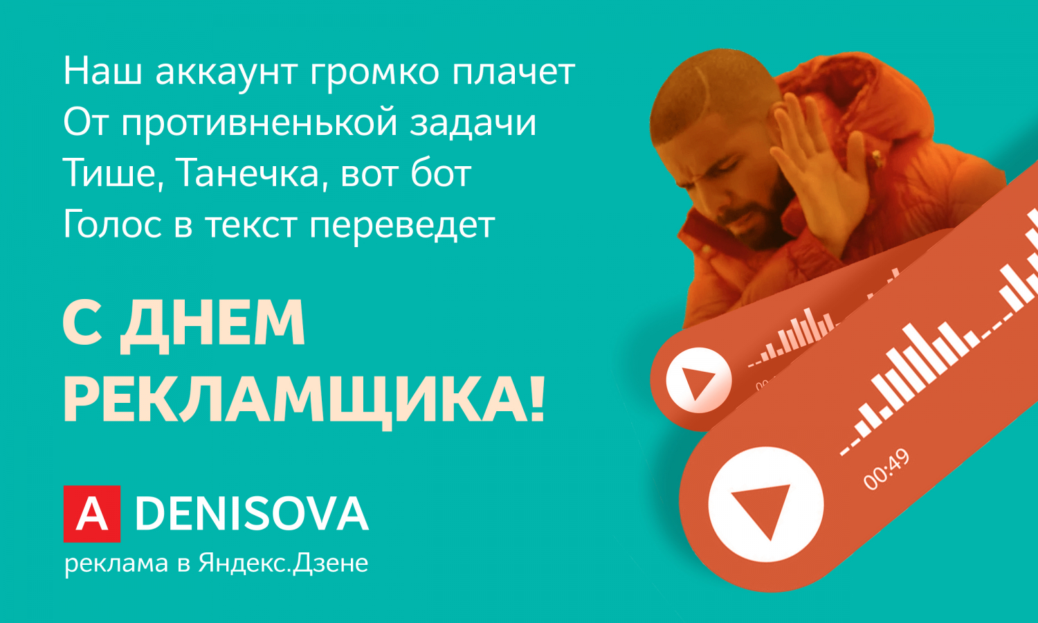 Мы поздравляем всех причастных с Днем рекламщика — это ваш день! Желаем всем притока рекламных бюджетов, высоких CTR, умопомрачительных конверсий и крутых коллабораций. А если вдруг станет трудно, то помните: в этом году рекламный рынок уже прошел проверку на прочность вопреки всему. Сейчас настало время уникальных возможностей и смелых экспериментов. Будущее наступило раньше, чем мы ожидали, и это огромный прорыв!