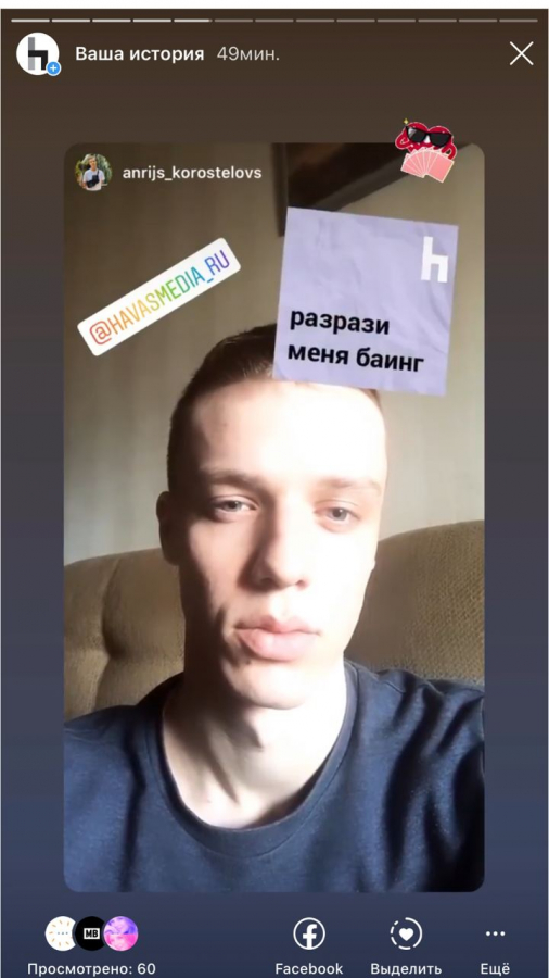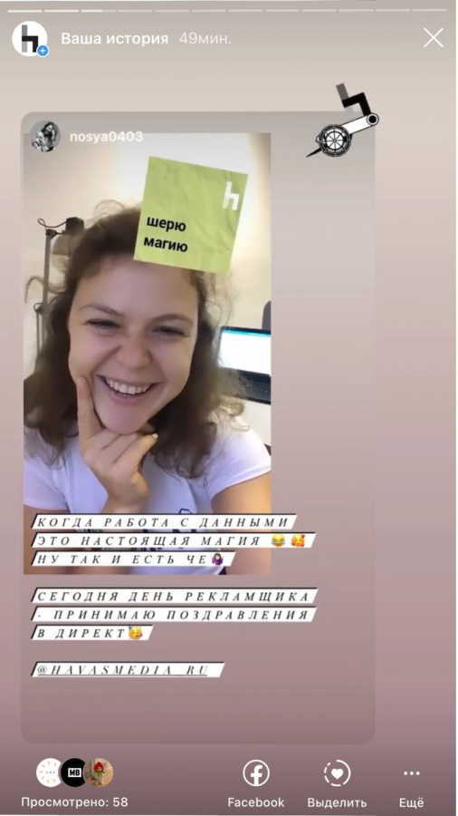 Друзья, с праздником! Мы запустили новые маски, которые не скрывают эмоции и не прячут улыбки, а провоцируют. Для тех, кто всегда «в огне» и привык искать самооправдания, подготовлены великие отмазы — они символично появятся над пламенем, которое поменяет даже цвет волос. И куда же в День рекламщика без маски с цитатами талантов Havas Media: «я вижу свет в конце экселя», «нет АСАПов, нет ФАКАПов», «пляшем от ставки», «залезу контентом в душу», да и чего ещё там только нет. Заходите на наш аккаунт в Instagram — проверяйте, что выпадет вам, и делитесь результатами в сторис.
