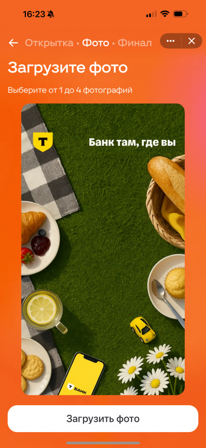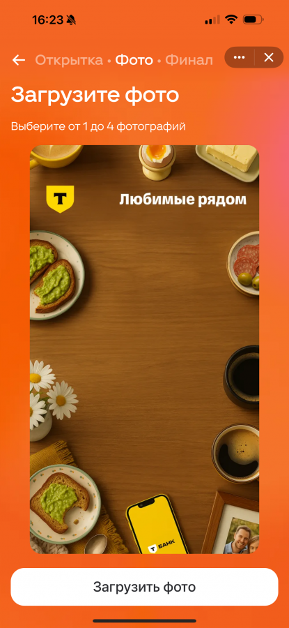 Брендированный экран приложения собрал 1,1 млн показов, а открытки «Т-Банка» — еще 1 млн.