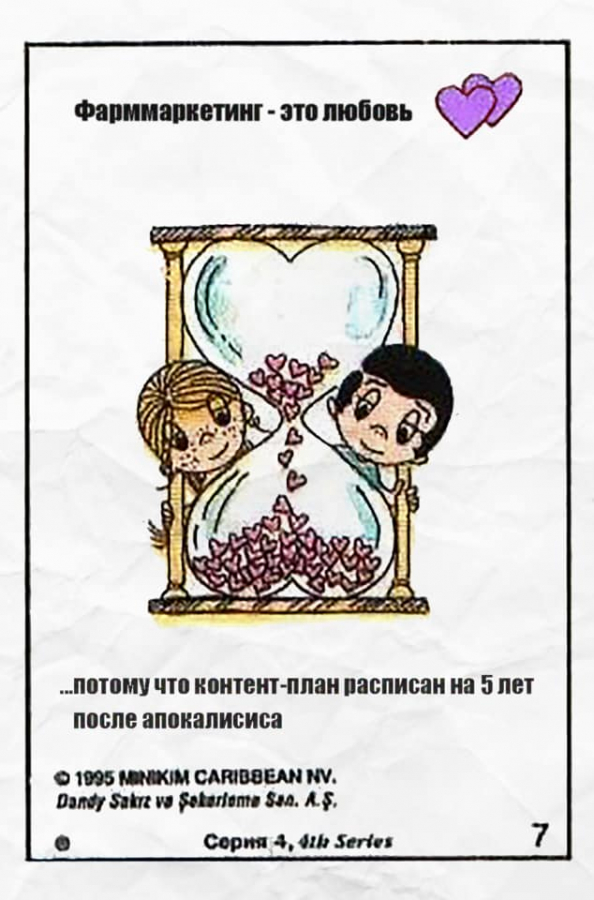 Рекламное агентство Медкрафт в преддверии 14 февраля анонсировало День влюбленных в профессию и опубликовало серию признаний в любви фарммаркетингу, понятных только «своим». По словам креаторов, только избранные смогут понять, почему контент-план в фарме расписан на 5 лет после апокалипсиса, и почему в любой непонятной ситуации нужно говорить «комплайенс». А все желающие смогут написать свои варианты тематических признаний — их также реализуют в формате вкладышей жевательной резинки «Love is»