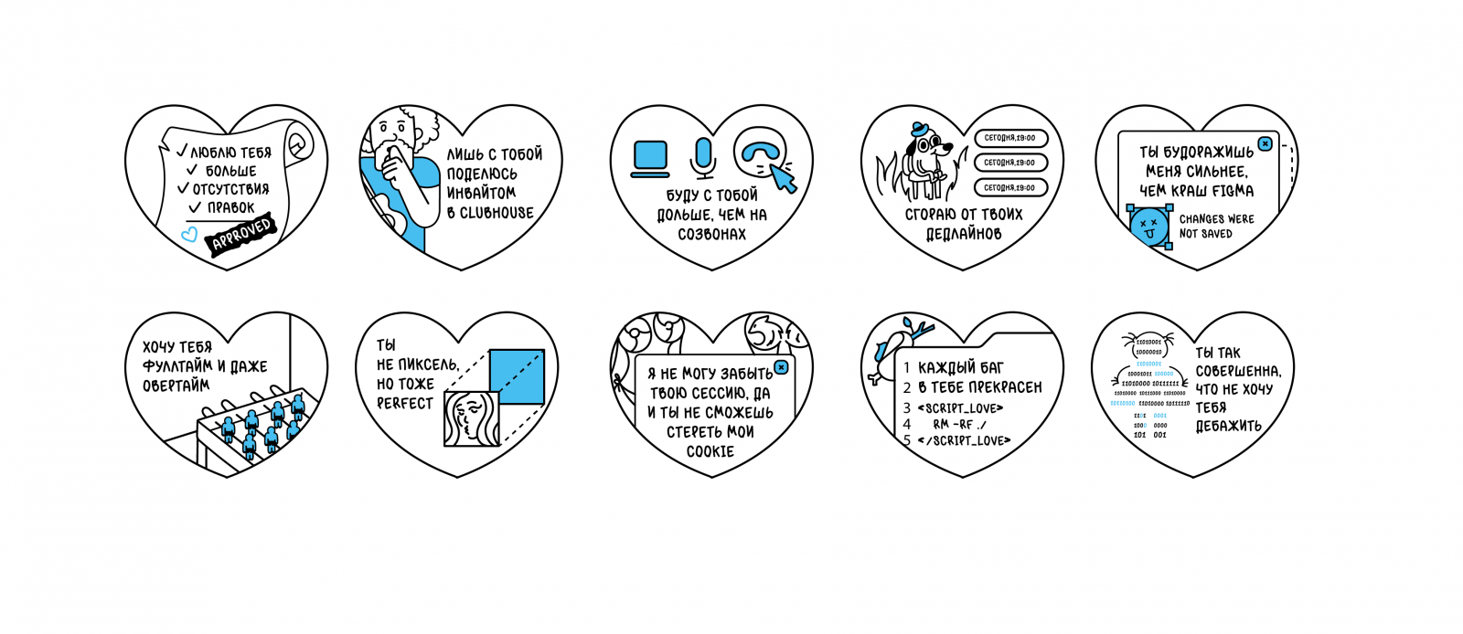 Также в рамках коллаборации была выпущена серия ироничных валентинок, прототипы которых с большой долей вероятности каждый из нас получал от родителей, родственников, взрослых друзей… или же пересылал сам?