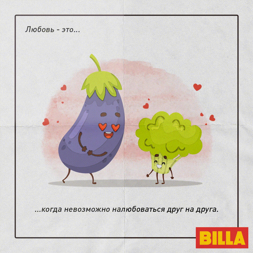 BILLA в преддверии Дня всех влюбленных запустили небольшую игру: подписчики официального аккаунта BILLA Вконтакте смогут поймать скрином свою «лав стори». Команде удалось использовать популярную франшизу комиксов «Love is…», интегрировав в нее новый лифлет, покупки и доставку BILLA. А также напомнить, что для BILLA любовь — это свежесть, качество и выгода для покупателей.
