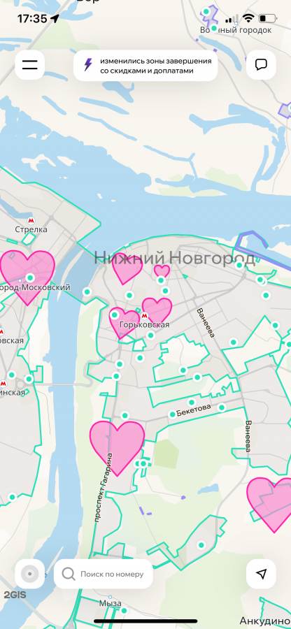 Бренд нанес на карту зоны для свиданий с собой, городом или любимым человеком. Поэтому можно не заморачиваться с планами, а просто ехать в любое сердечко и завершить там аренду. Потом получить 100 рублей на следующую поездку в течение 24 часов.