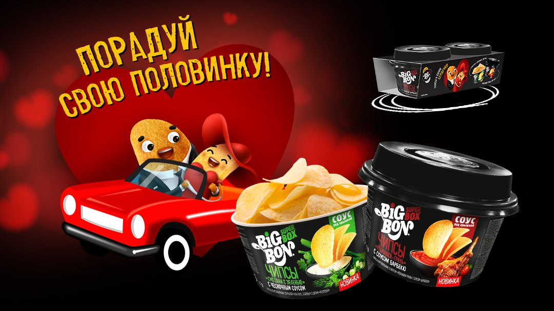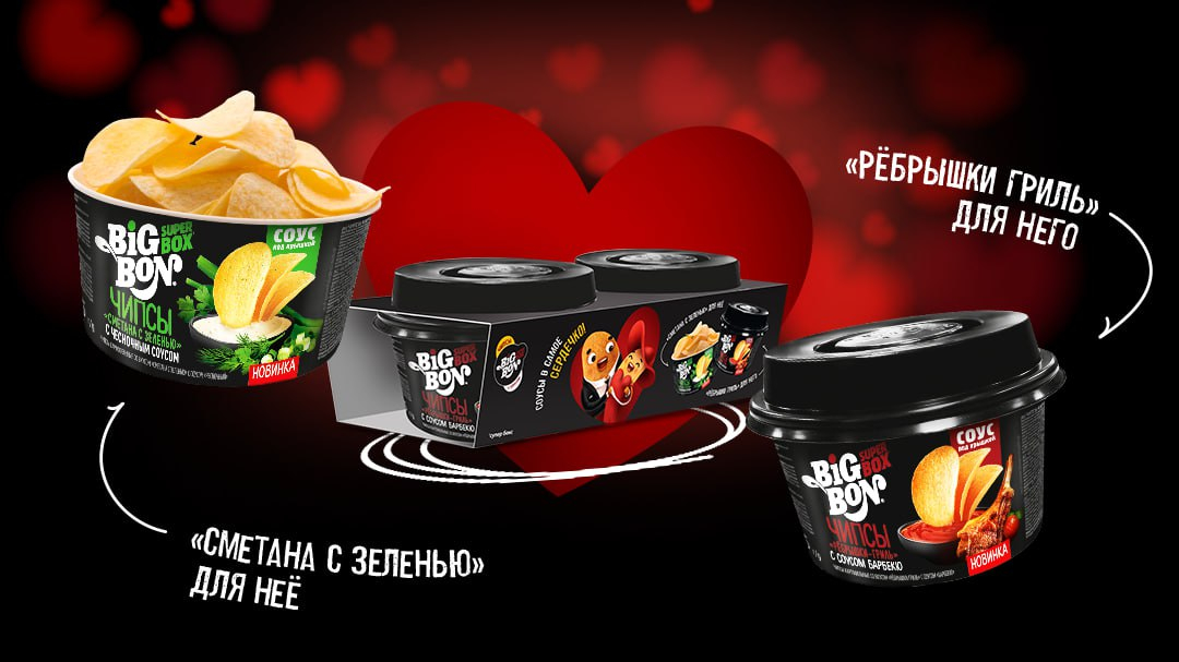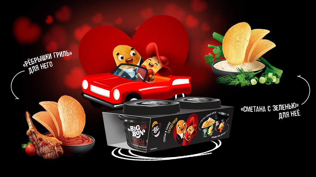 Слоган проекта: «Соусы в самое сердечко». Покупателям доступны два вкуса — ребрышки-гриль для «него» и сметана-лук для «неё». Маскотами стали две картофелины, которые символизируют идею, что даже картошка в чашке может быть влюблена.