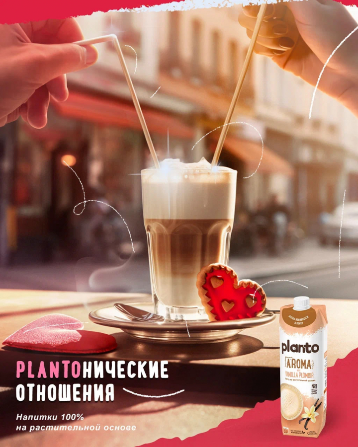 Бренд растительного молока Planto вместе с агентством Serviceplan стремятся отвечать на каждый знаковый инфоповод ситуативными постами. На 14 февраля бренд ответил предложением выпить чашечку кофе с Planto на двоих.