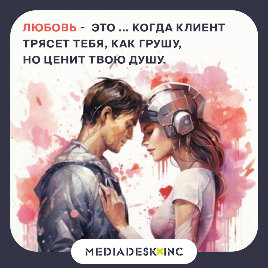 В этот раз дизайнеры и креаторы MediaNation так заняты запусками рекламных кампаний для клиентов на 14 февраля, что доверили подготовку креативов для соцсетей агентства нейросетям. К работе привлекли тандем ChatGPT и Stable Diffusion.