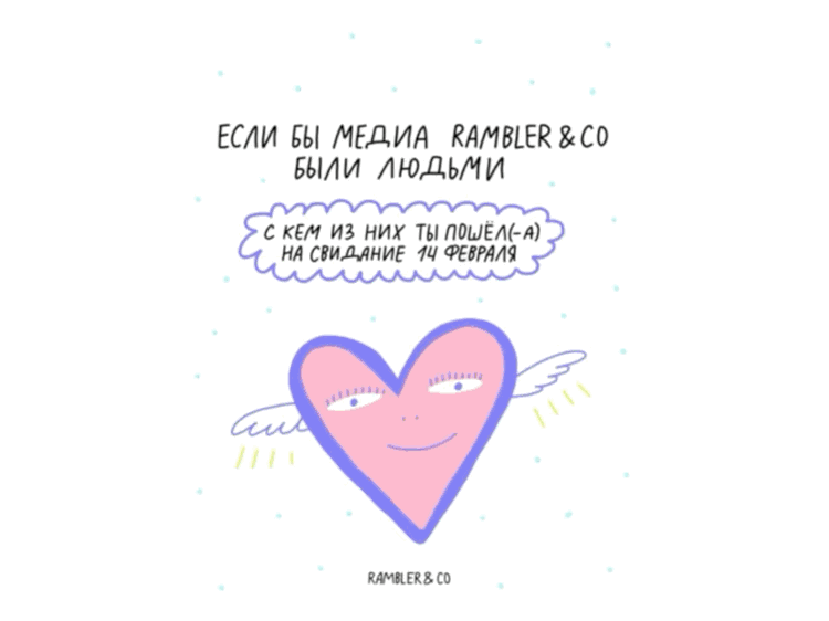 Хотели бы узнать, какое из СМИ окажется вашей второй половинкой? Тогда стоит заглянуть в телеграм-канал Rambler Way и отправиться на виртуальное свидание. Кто станет вашим заветным мэтчем?