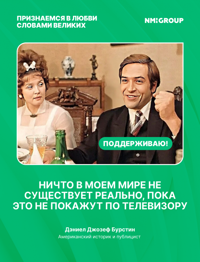 Вот и появился отличный повод снова протестировать нейросети — анимация поздравления, конечно, дело хорошее, но настоящий креатив не в инструментах, а в том, как ими пользоваться. Тот крут, кто находит способы выдавать ожидаемый результат — в рекламе, в жизни и в любви. Так что пусть ваш романтический умысел реализуется и больше не будет ни пересъемок, ни дублей. Пусть правки в отношениях будут только по мелочи, а режиссура судьбы — исключительно мастерская. Любите и будьте любимыми!
