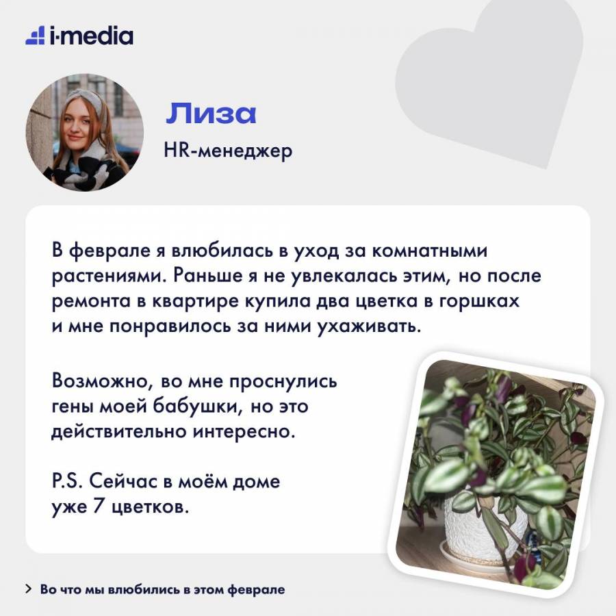 Чтобы проникнуться романтической атмосферой праздника, спросили коллег, во что они влюбились в феврале, и делимся в карточках.