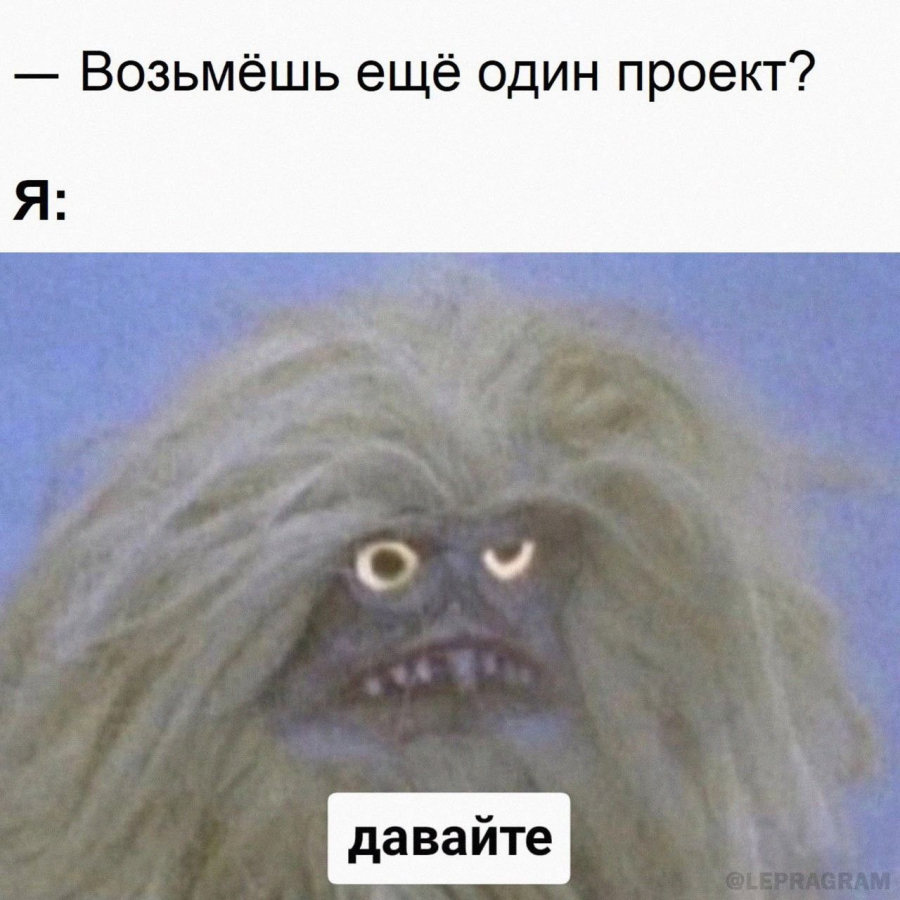 Мой любимый мем про баланс работы и созвонов! Только собираешься делать дела, как тут же любимому клиенту нужен колл. Но нет ничего приятнее и полезнее, чем пообщаться с любимым клиентом и разбавить нудные задачи интересной беседой).