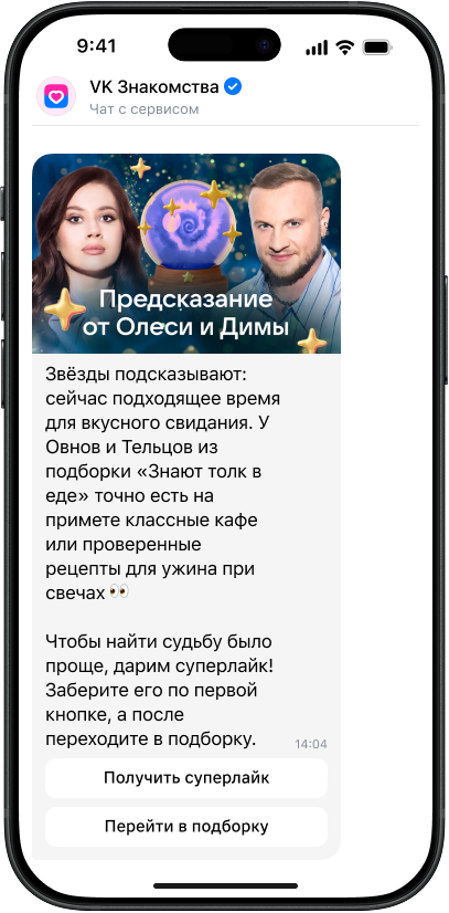 Пользователи «VK Знакомств» получили предсказания от Олеси Иванченко и Димы Журавлева