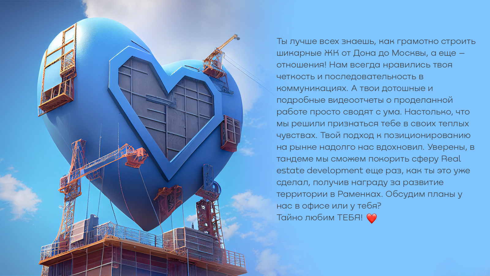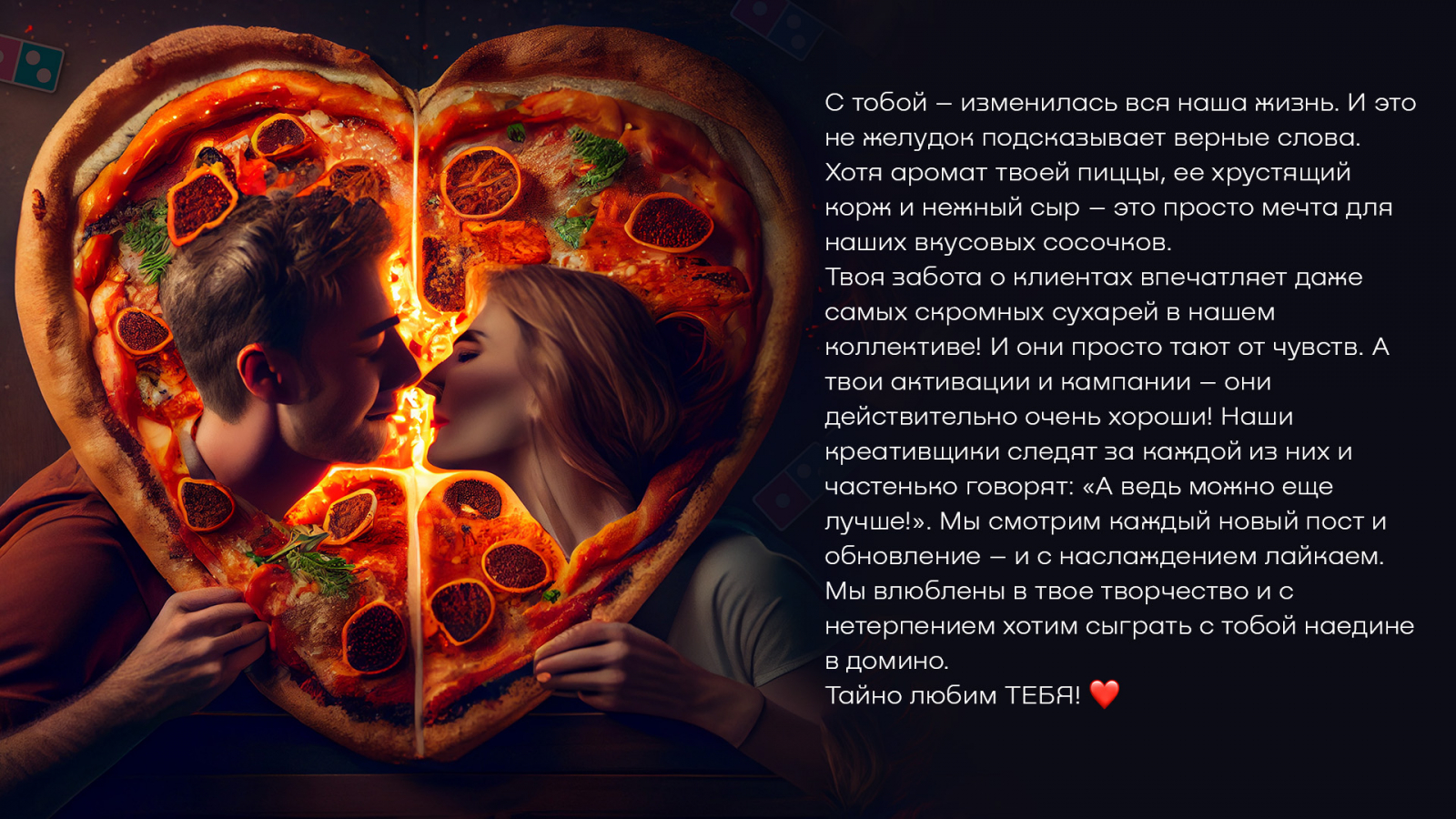 Admon . В компании решили повысить показатель ROLI (Return on Love Investment) и создать любовные послания. Тому, кто отправит открытки 10 клиентам и партнерам — гарантируют высокие показатели.