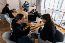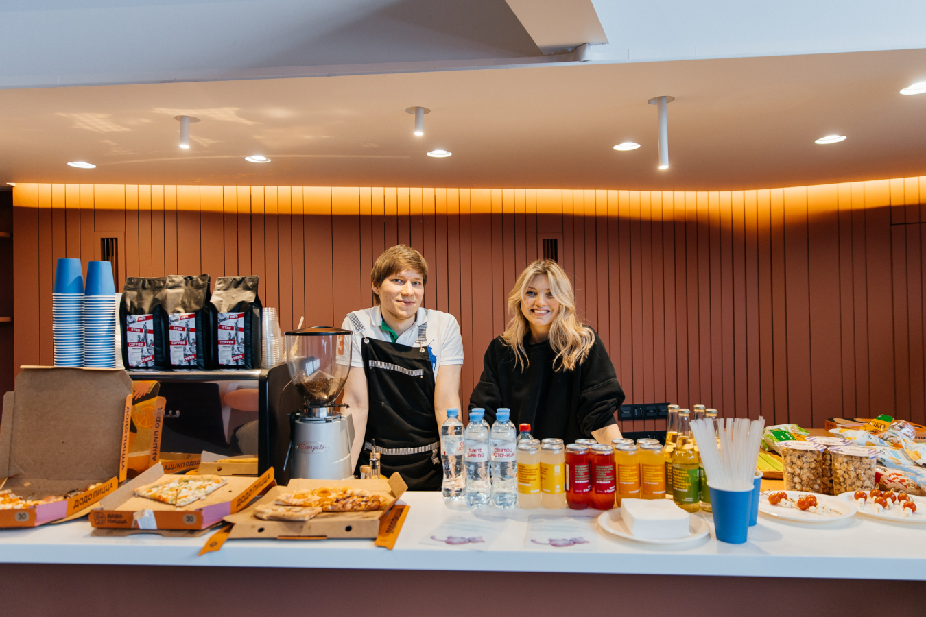 Мы хотели, чтобы гости мероприятия могли не только поработать, но и обрести новые полезные знакомства. В коворкинге можно было поиграть в настольные игры или приставку, а также попробовать бесплатные закуски, пиццу и кастомизированные напитки, названия для которых придумывал ИИ-ассистент.