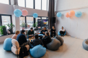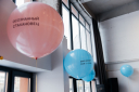 В качестве декора мы выбрали минималистичные воздушные шары с креативными копилайнами — «Тонущие в дедлайнах часов не наблюдают», «Make Money, Don’t Love» или «День любителей Хабаровска» с отсылкой к пятитысячной купюре. Пространство также украшали фирменные подушки-коты — эти животные являются символом компании.