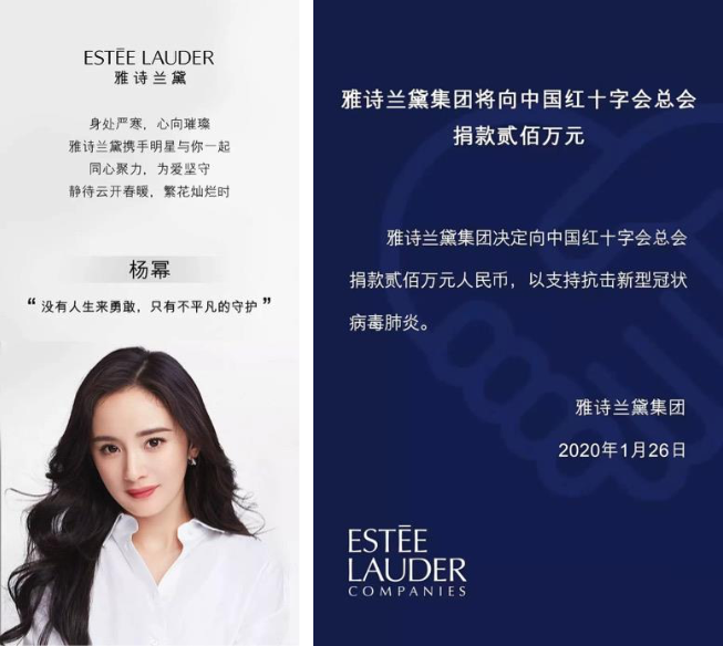 Estée Lauder вместе с пожертвованием в фонд борьбы с вирусом в провинции Ухань через своих амбассадоров Li Xian и Xiao Zhan желает здоровья в новом году по китайскому календарю: