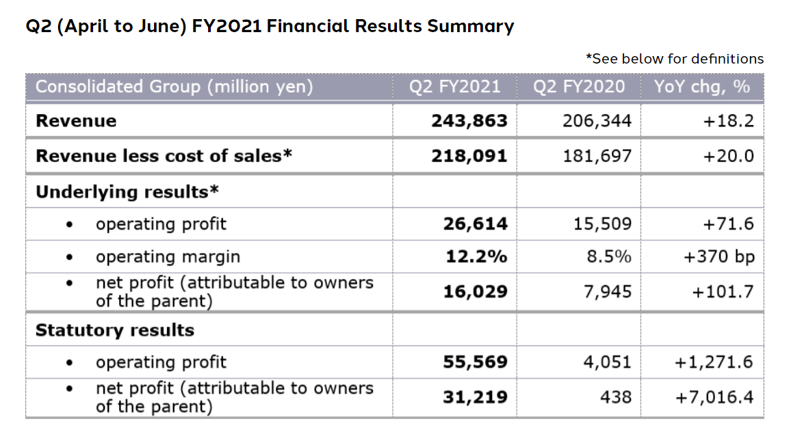 В первом полугодии органический рост составил 5,4%. Японский бизнес компании вырос на 4,5%, международный — на 6,2%: в Америке органический рост достиг 5,1%, в регионе EMEA — 8,7%, в Азиатско-Тихоокеанском (исключая Японию) — 3,6%.