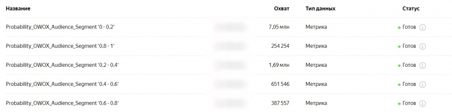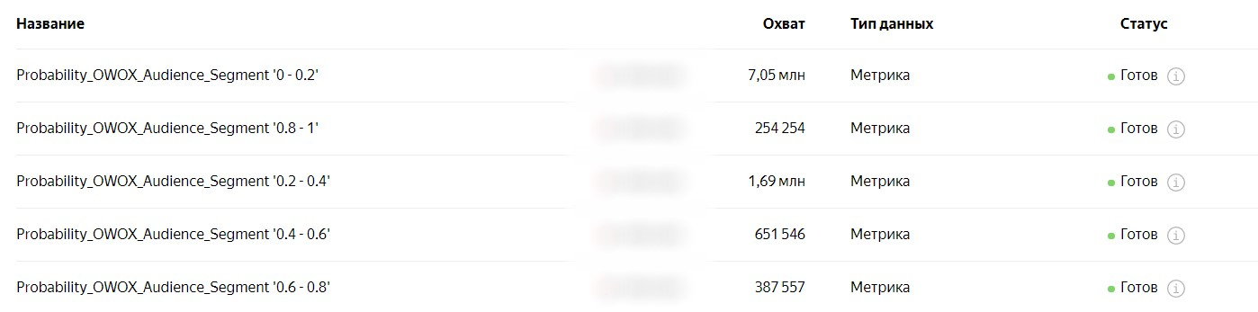 Используя инструмент прогнозирования конверсии от OWOX, мы можем сэкономить время при создании аудиторных сегментов, все пользователи сайта обрабатываются в автоматическом режиме и собираются в готовые данные для «Яндекс.Аудитории», которые в дальнейшем можно использовать в рекламных кампаниях для корректировки ставок и запуска ретаргетинга.