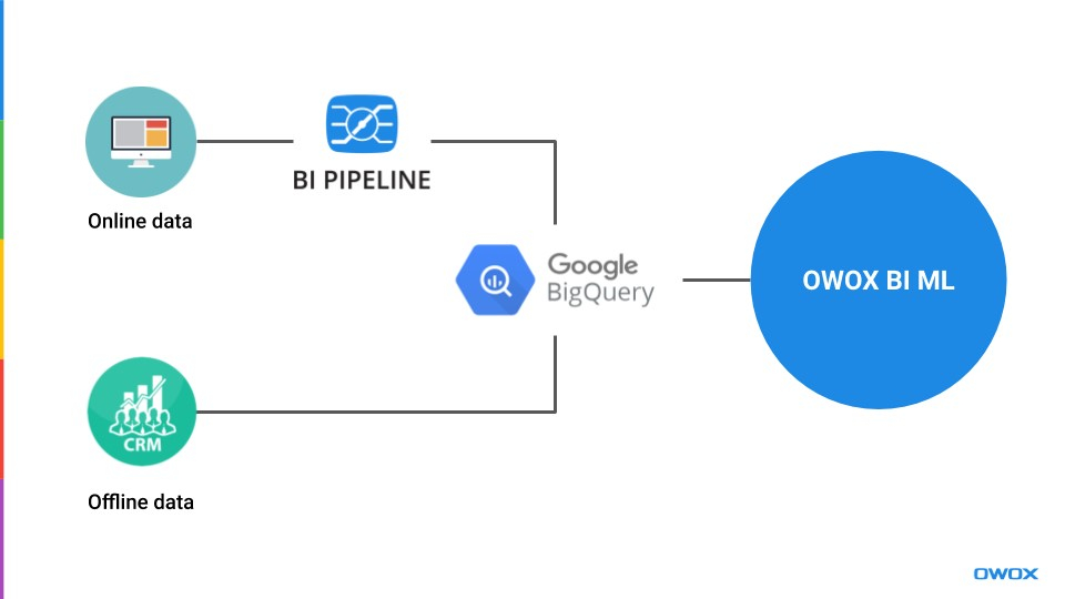 1. Собираем данные о поведении пользователей сайта в Google BigQuery с помощью OWOX BI, но также можно использовать и стандартную выгрузку Google Analytics 360.