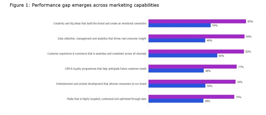 Появляется значительный разрыв между текущими возможностями и факторами, которые будут влиять на успех маркетинговых кампаний в будущем. Причём главные вызовы лежат в области сбора данных, управления и аналитики.