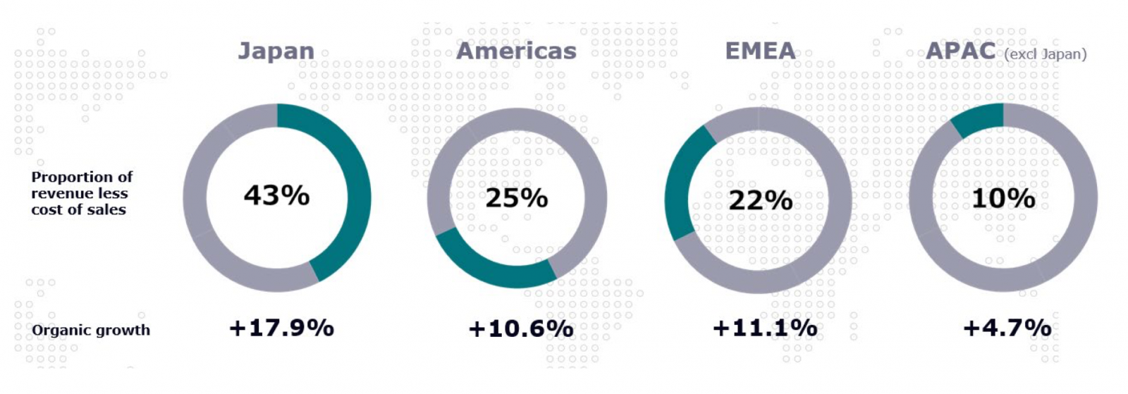 В регионе EMEA (Европа, Ближний восток и Африка) органический рост dentsu в 2021 году составил 11,1%. Органическая выручка на российском рынке показала позитивную динамику в диапазоне до 10%.