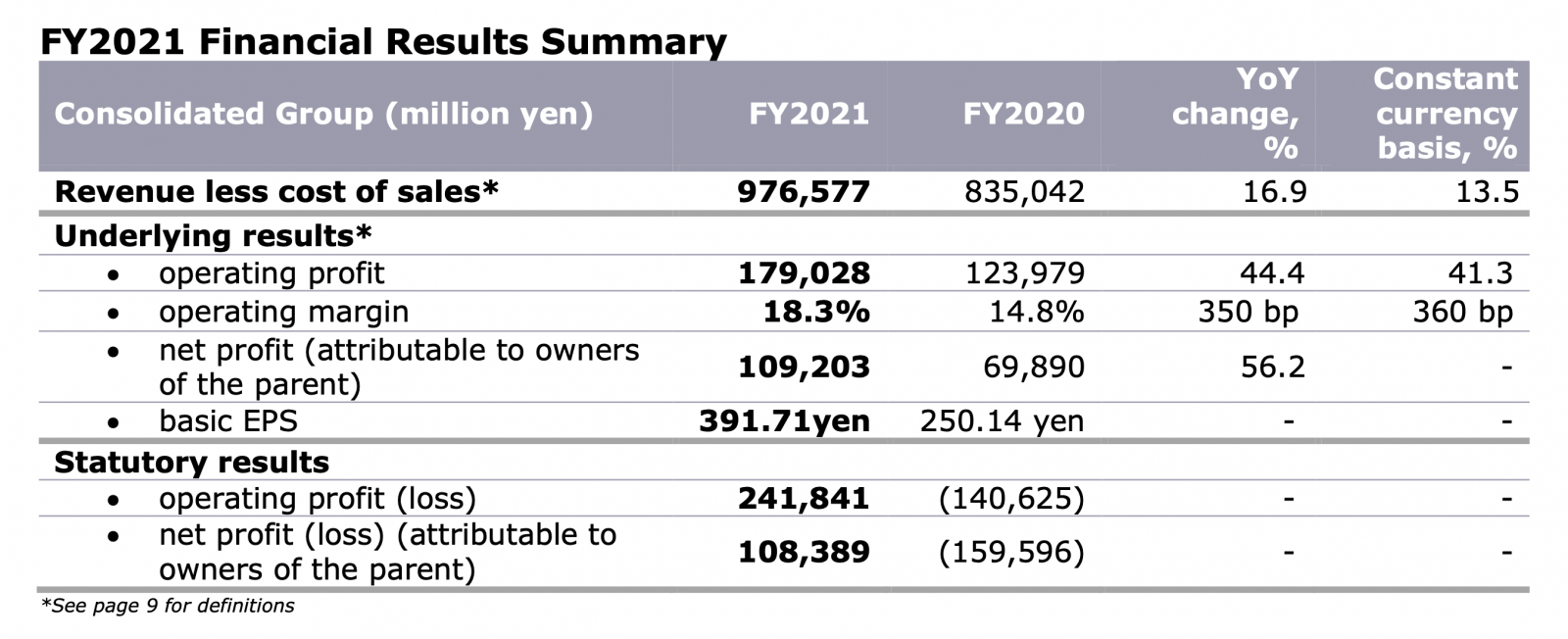 Коммуникационная группа dentsu Group, в которую входит dentsu Japan Network и dentsu International, отчиталась о консолидированных финансовых результатах за 2021 год. Валовая прибыль увеличилась на 13,5% до рекордных 976 млрд японских йен (около $8,4 млрд): у японского бизнеса — на 19,2%, международного — на 9,6%. Органический рост dentsu group в 2021 году составил 13,1% — 17,9% в Японии и 9,7% на глобальном уровне.