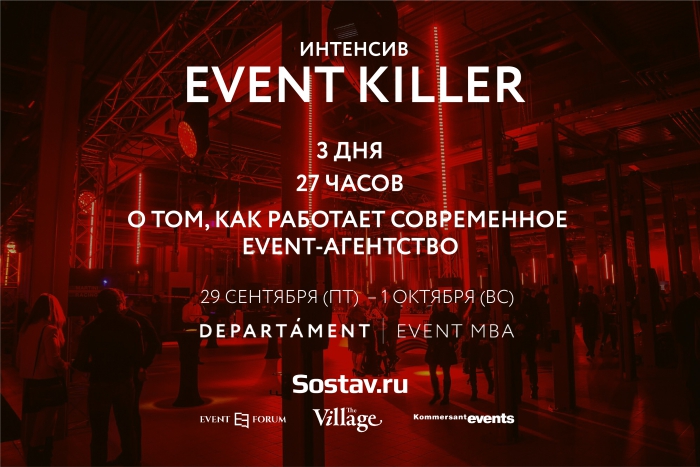 Итенсив EVENT KILLER - это уже второй образовательный проект от DEPARTAMENT | EVENT MBA, посвященный процессу создания значимых и актуальных мероприятий в России и за рубежом.