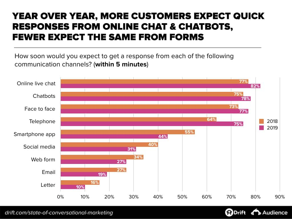 Важный момент об онлайн-чатах и чат-ботах в 2020 году: общение в мессенджерах становится более личным. Почему? Если стиль коммуникации в мессенджере в целом соответствует стилю и эмоциональному контексту вашего бренда, больше шансов, что пользователи вас запомнят.