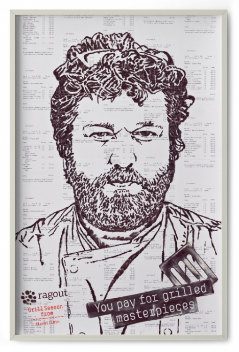 Depot WPF разработало промо-кампанию «You pay for grilled masterpieces!» для московского кафе Ragout. Рекламные постеры, нарисованные лопаткой для гриля, больше похожи на арт-объекты, чем на рекламу.