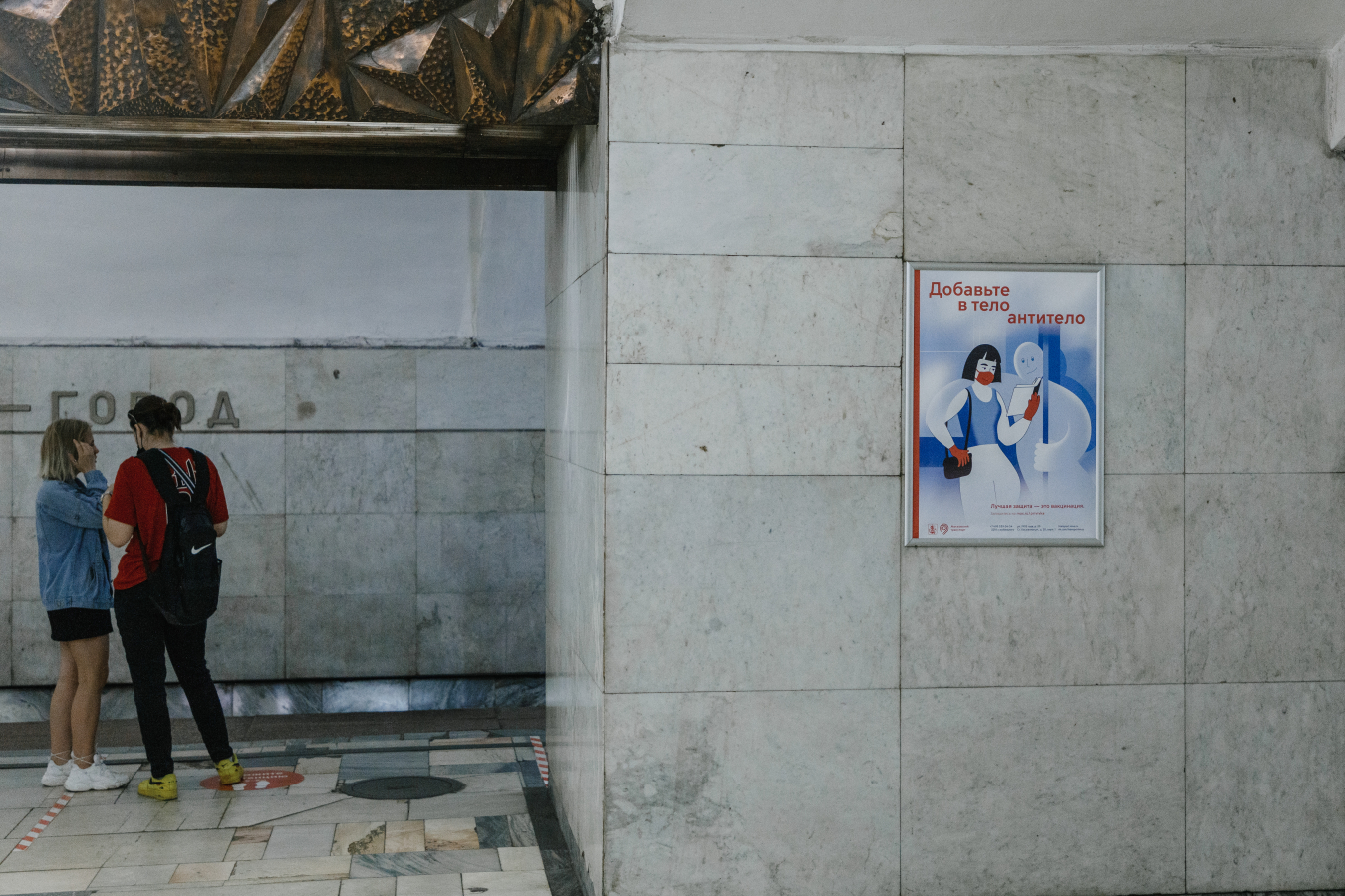 В вагонах и на станциях московского метро появились баннеры с призывами вакцинироваться — активацию разработали креаторы