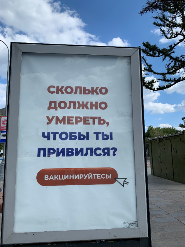 Ранее на улицах Москвы можно было встретить баннеры с устрашающей надписью «Сколько должно умереть, чтобы ты привился?».
