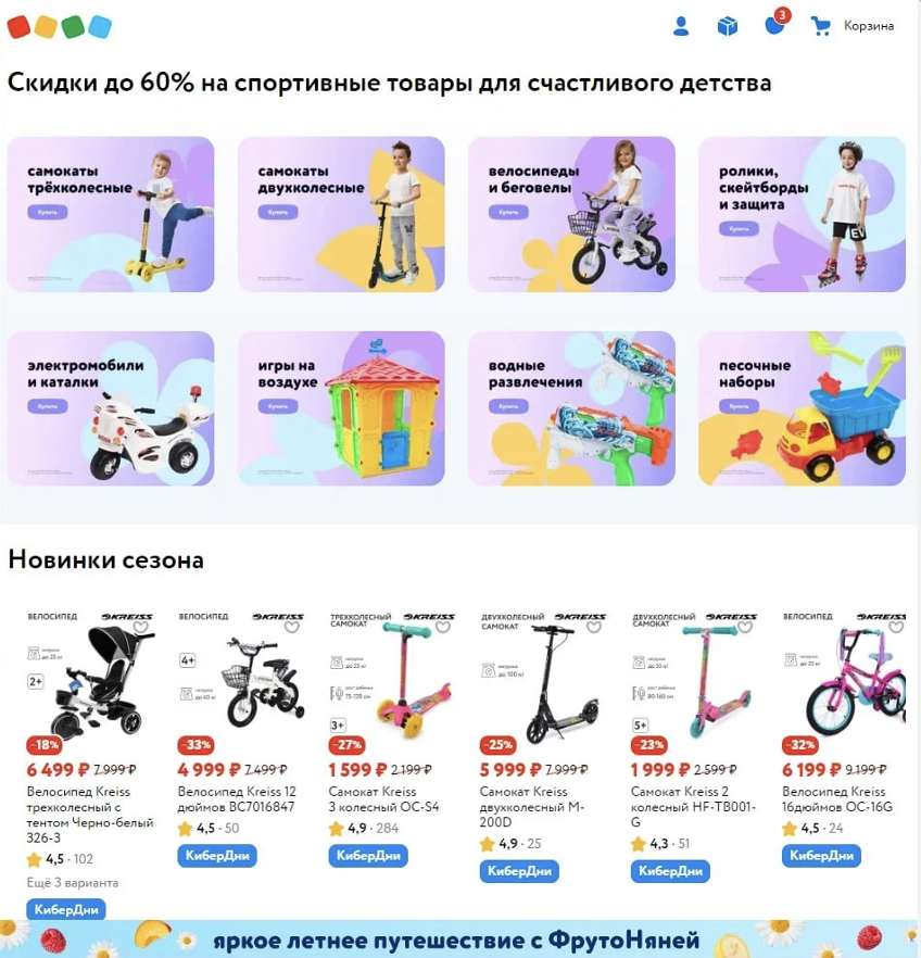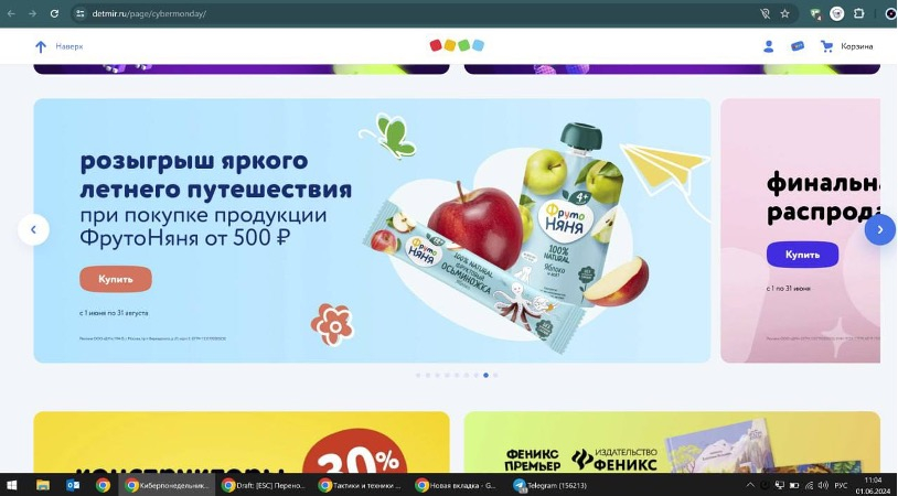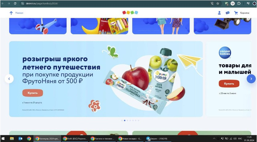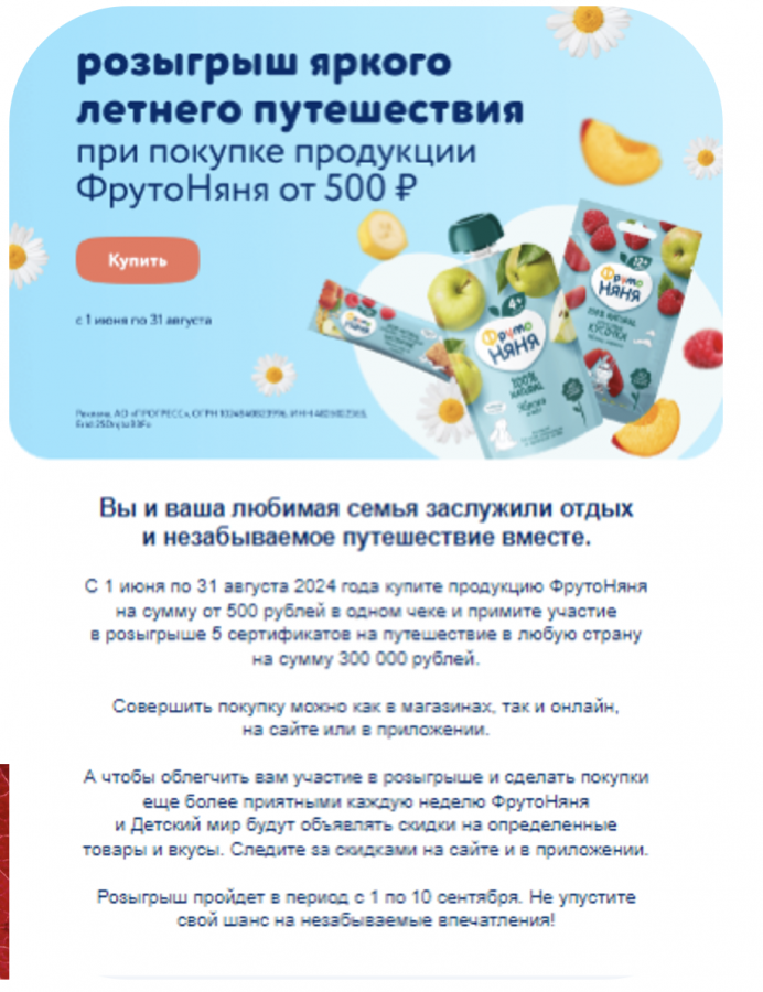 Даже сильным и хорошо известным брендам важно выделяться на фоне конкурентов — особенно в витринах крупных ретейлеров. Поэтому летом 2024 года «ФрутоНяня» запустила спецпроект с «Детским миром». Результатом стал рост продаж на 52% по сравнению с тем же периодом прошлого года, а рост среднего чека — на 10%. Все это — благодаря игровой механике и регулярным скидкам. Команда проекта поделилась с Sostav подробностями.