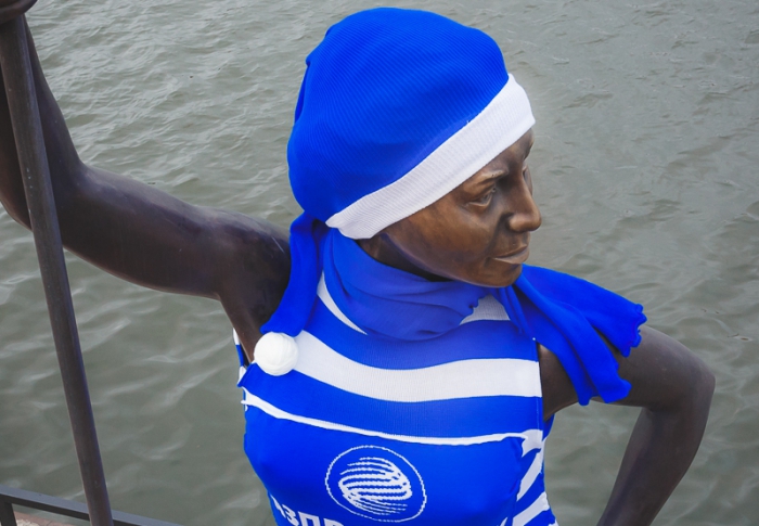 В компании Газпромбанк Лизинг решили, что в канун Нового года немного теплоты заслуживает и знаменитая скульптура «Девушка с веслом», расположенная неподалеку от центрального офиса компании - в районе нагатинского затона.