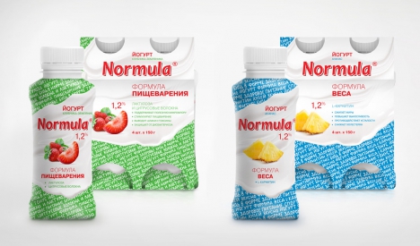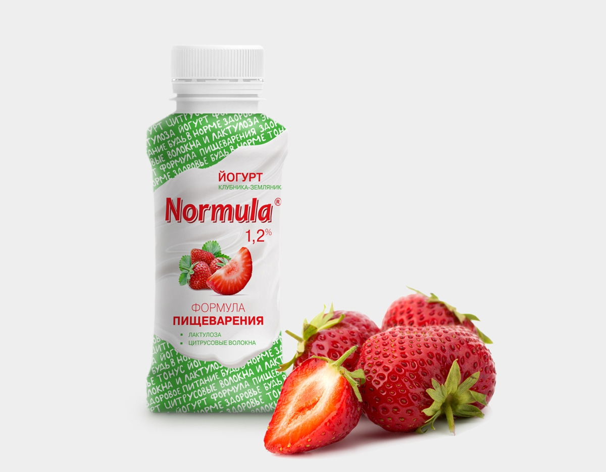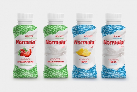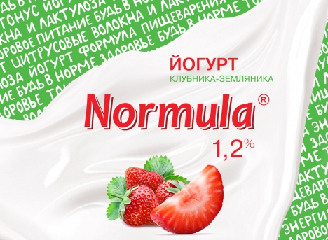 Студия DEZA разработала дизайн упаковки йогуртов Normula для Агропромышленного союза «АЛЕВ». Из списка преимуществ продукта креаторы сделали типографику.