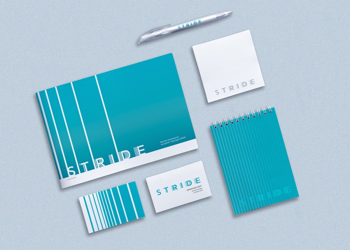 По словам авторов проекта, название позволяет ощутить себя активным человеком, широко шагающим по жизни. Графическое решение логотипа Stride также основано на идее движения. За счет вспомогательных элементов буквы демонстрируют момент сдвига, начало широкого шага. Эффект вибрации придает логотипу дополнительную динамику, уверены дизайнеры.
