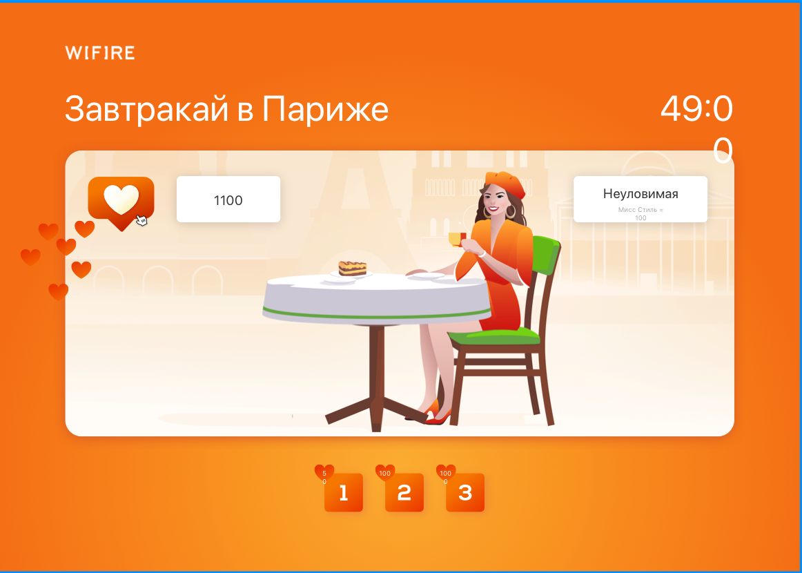 Игра представляет собой интерактив в двух направлениях — для мужчин и для девушек. Выбрав пол на стартовой странице игры, участник попадает в игру «Wifire воины интернета» или «Мисс Wifire».